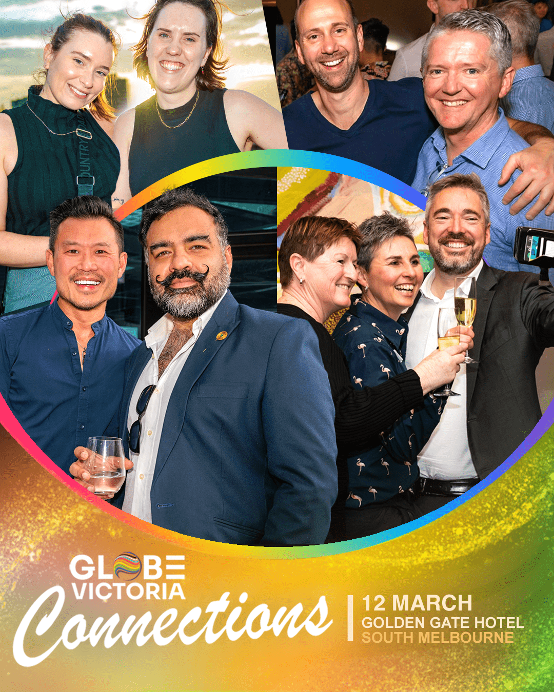 GLOBE Victoria Connections events are the perfect opportunity to expand your networks, enjoy a laid-back conversation over a moreish canape (or seven), and support the LGBTIQ+ community in a relaxed social environment.